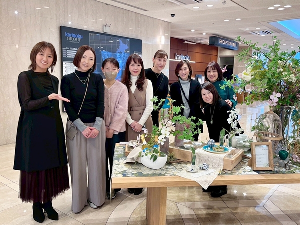 カリモク家具新横浜ショールーム様のエントランスに実際に展示されるディスプレイを、プランニング~展示まで、チームでトータル実践していただきました。